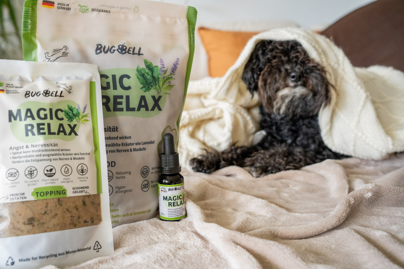 Besuch, Silvesterknaller und hektische Feiertage können für Hunde schnell zur Belastung werden. Mit dem AntiStress-Paket unterstützt du dein Tier auf natürliche Weise: Das MagicRelax Trockenfutter mit Hanf & Spinat sorgt für mehr Gelassenheit, das CBD-Öl bietet beruhigende Unterstützung bei Nervosität, das MagicRelax Topping bringt Extra-Genuss & Balance und die MagicRelax Softies schenken Entspannung im Snack-Format. So bleibt dein Vierbeiner entspannt – auch wenn es um ihn herum turbulent wird.