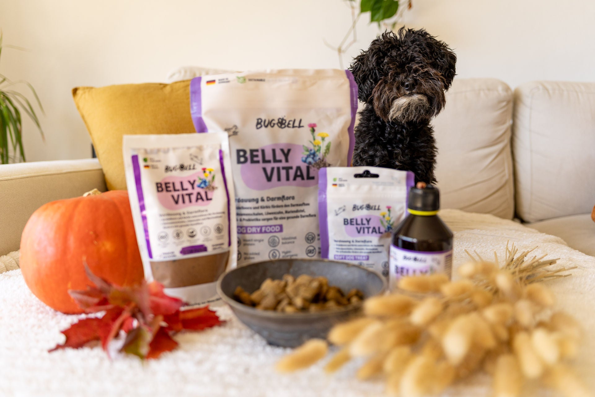 Kälte, Nässe und weniger Sonnenlicht fordern das Immunsystem deines Hundes heraus. Mit dem ImmunPower-Paket stärkst du seine Abwehrkräfte und unterstützt die Verdauung – für mehr Vitalität in der dunklen Jahreszeit. Enthalten sind das BellyVital Trockenfutter für Darmgesundheit & starke Abwehr, das BellyVital Elixier zur Unterstützung von Verdauung & Leberfunktion, das BellyVital Topping für Extra-Genuss & Darmfreundlichkeit sowie die BellyVital Softies als gesunder Snack mit Mehrwert.
